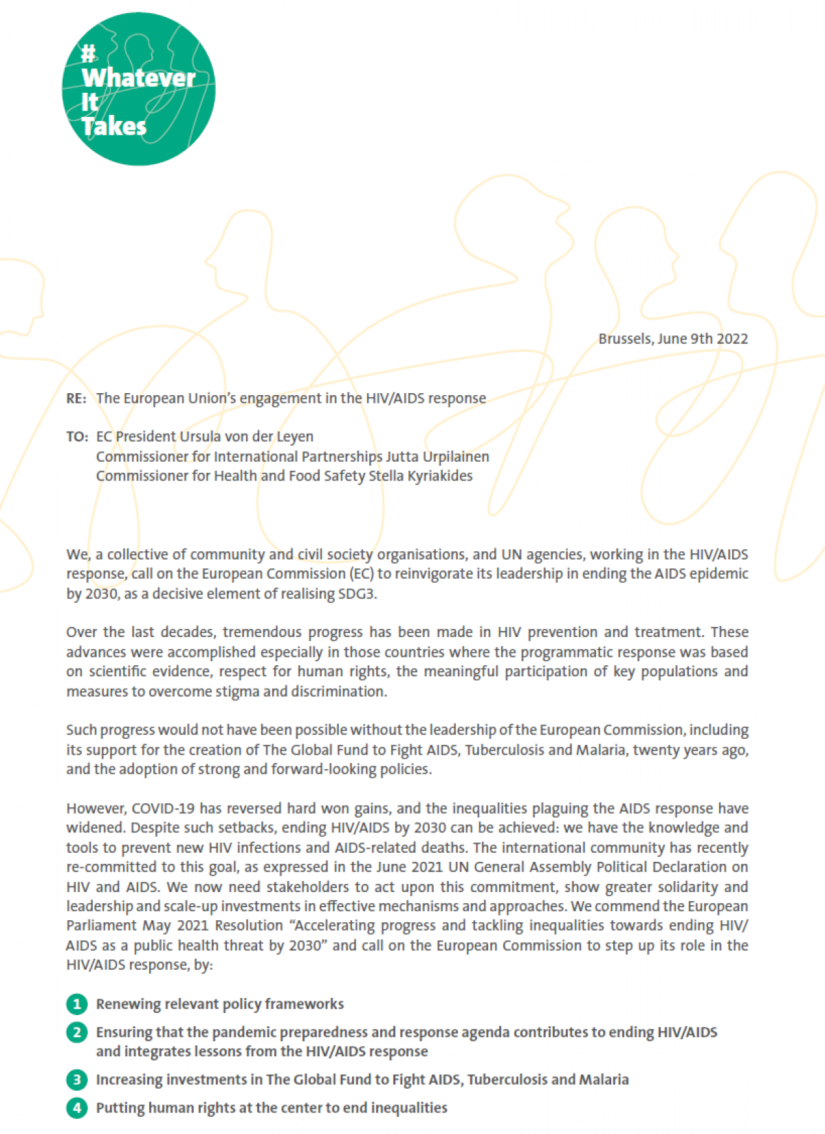 Showing unprecedented unity, 70+ community and civil society organisations from all parts of the world, and supported by UN agencies, call on the European Commission (EC) to reinvigorate its leadership in ending the AIDS epidemic by 2030, as a decisive element of realising SDG3.